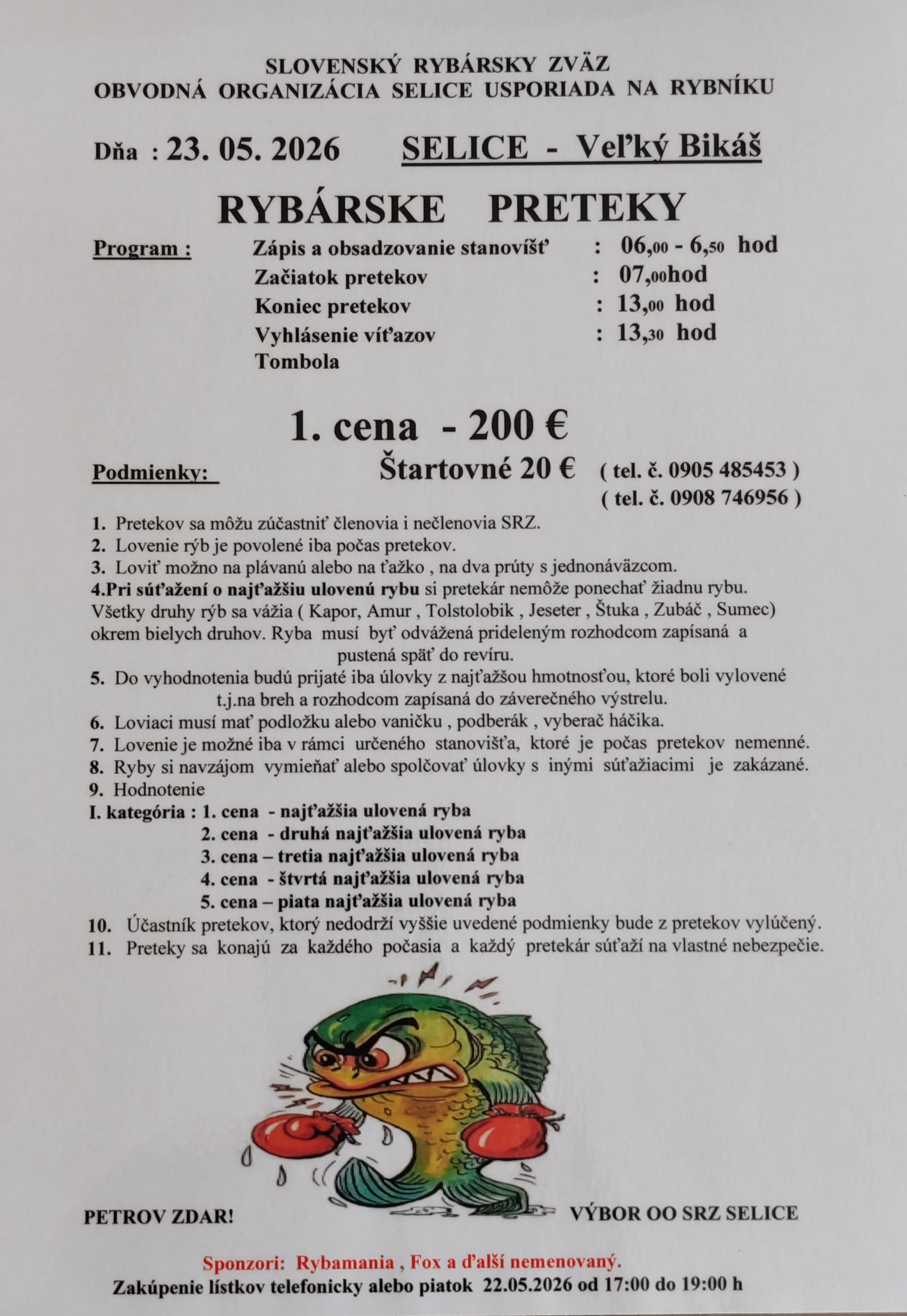 Výbor SRZ MsO Šaľa zvoláva v zmysle §14, odst. 4 Stanov SRZ Výročnú členskú schôdzu, ktorá sa uskutoční dňa 12. apríla 2026 ( nedeľa) o 8,30 hod. v Dome kultúry Šaľa. Volebný poriadok (.pdf)